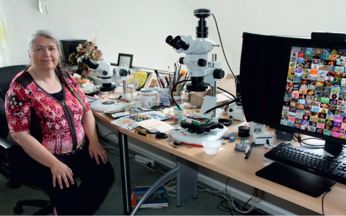 Realisation der ersten eigenen Wanderausstellung »Lichtwelten – Spurensuche eines Astrophysikers, ein Dialog in Bildern mit Dr. Norbert Pailer« Das Experiment, an der Grenze des Sichtbaren zu malen, führte zur Entwicklung der Mikromalerei. (Malerei als eine Art Präparation mit Pinsel und Farbe unter dem Binokular.)